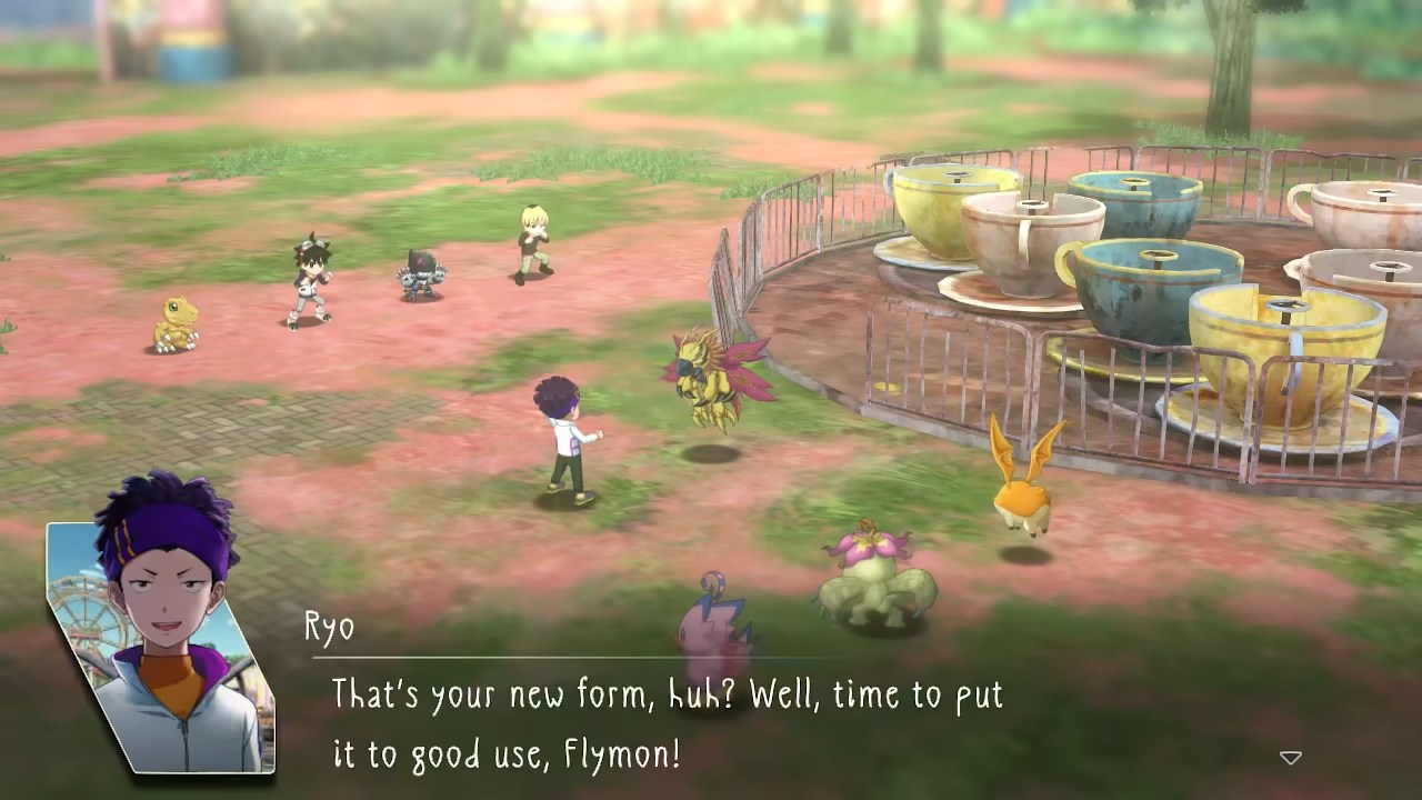 Truthful Route: Session 08! The group go to the Amusement park to look for Miu. The first time around, they encounter problems with the little Digimon there. This time around Ryo's partnet Kunemon evolves to Flymon!
