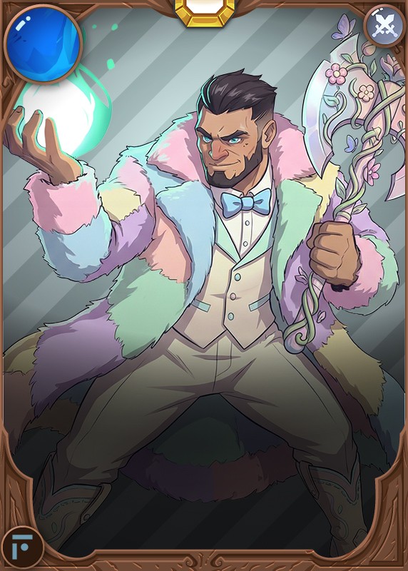 La skin con más cambio visual, ya que cambia la principal característica de la tarjeta quitándole su piel de oso, que es por lo que se reconoce (incluso por su asociación con el nombre). Al poder verse una cabeza completa hace que no sea tan reconocible, además del cambio de traje y su hacha. Solo es reconocible por su pose, lo que ayuda al objetivo de ser difícil de recordar.
