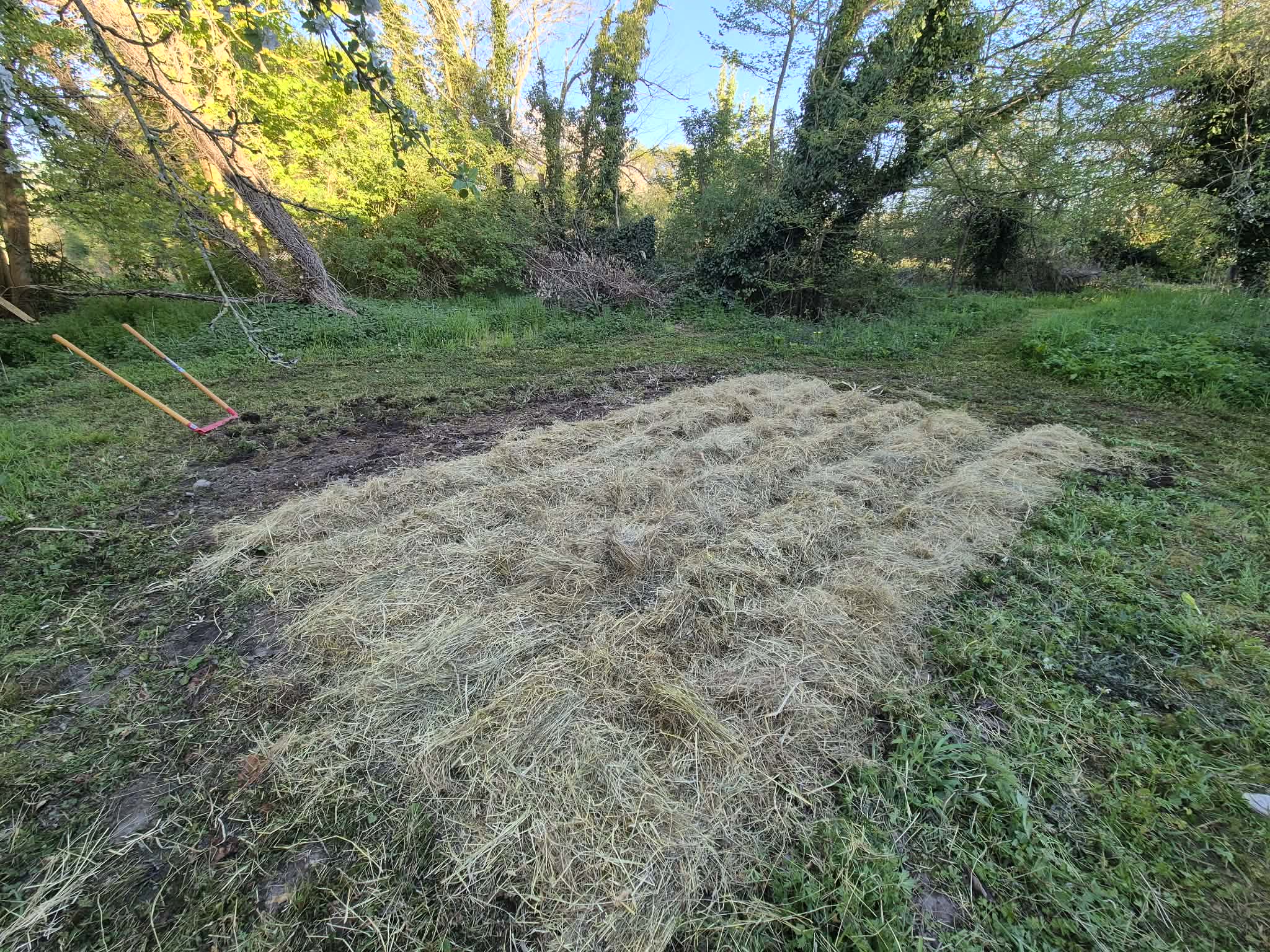 En juillet dernier, avec @altheana, nous avions récolté 40 kg de pommes de terre. Depuis, nous avions couvert avec de la tôle le mini potager que nous avions utilisé pour ça. Ça a permis à l’herbe de ne pas repousser, notamment.