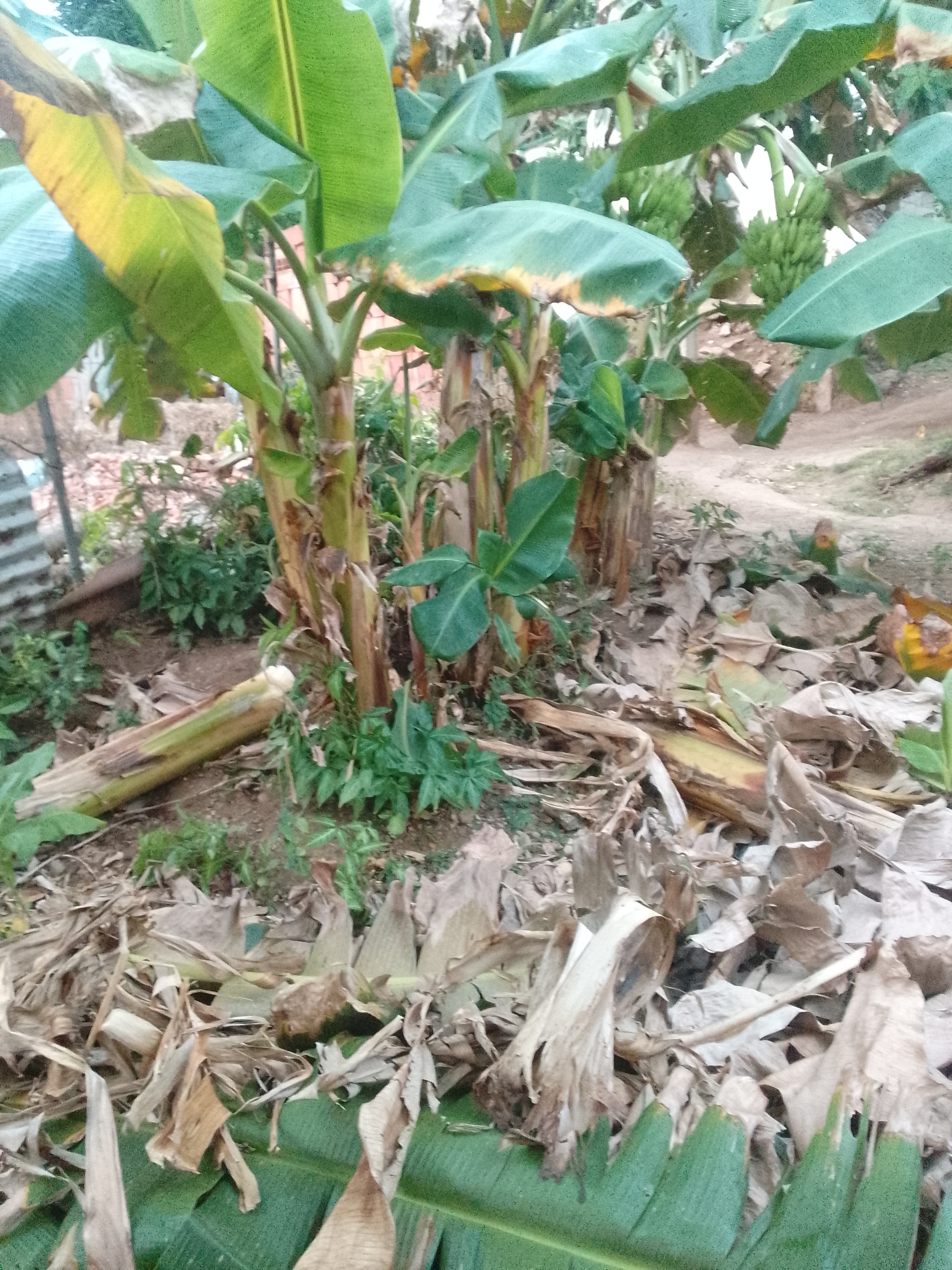 Buenas noches ,hoy solo quiero mostrar que se limpiaron las matas de plátanos que tenían muchas hojas secas y amarillas e impedian que e el riego las favorecieran, ya que las hojas no dejaban que el agua penetrara en su pie.